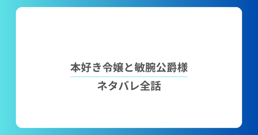 結論として、本好き令嬢は敏腕公爵様とひそやかに恋をするのネタバレ全話を追うなら、前半の不遇と救済、中盤の悪事暴露、後半の恋愛加速という流れを押さえて読むのがいちばん分かりやすいです。
